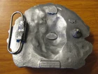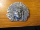 BERGAMOT BELT BUCKLE - INDIAN HEAD - 1993 -D 60 Measures 4" wide 3 1/4" high, fairly heavy. Thanks for bidding and have a nice day.