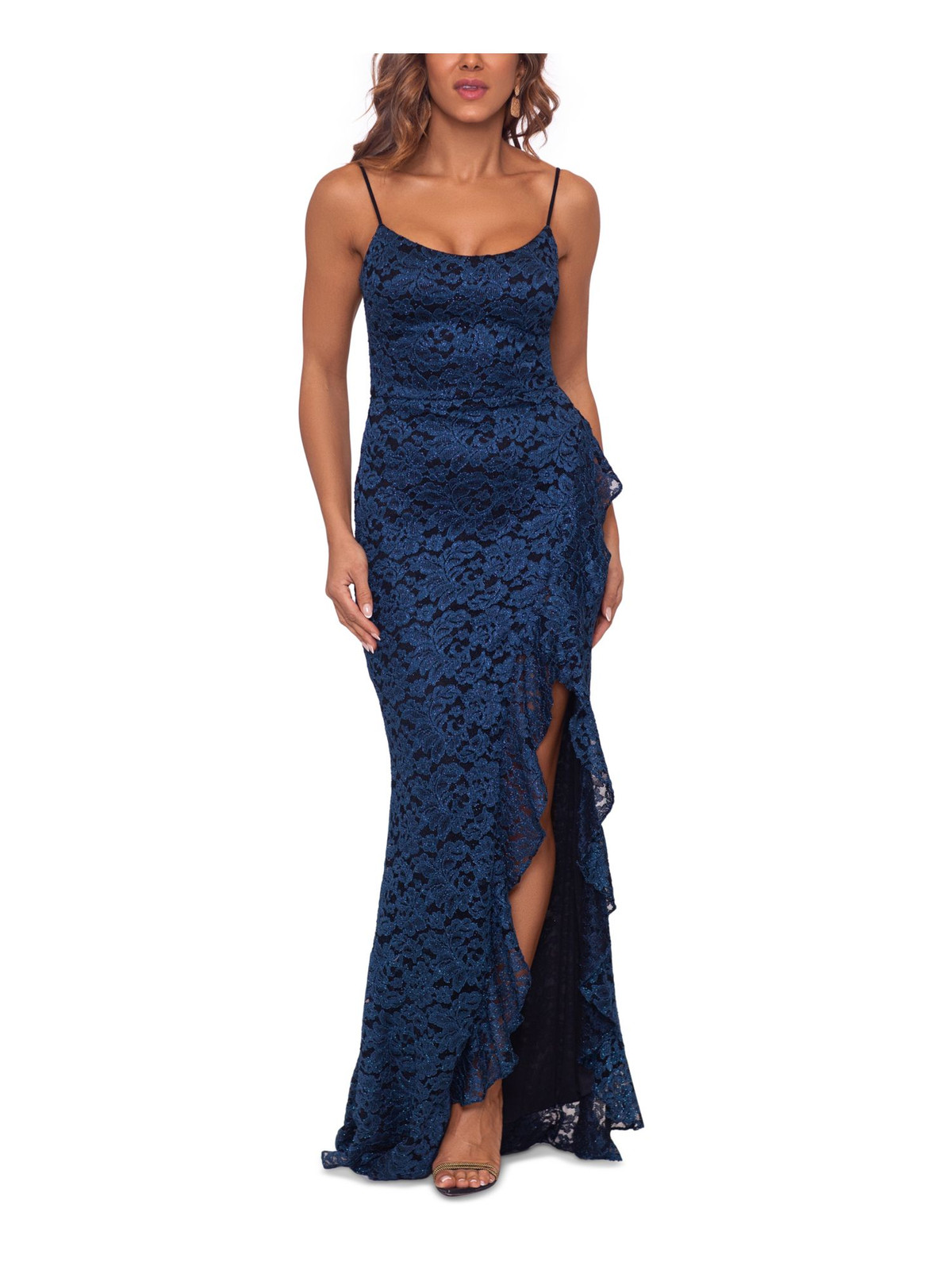 This dress is absolutely stunning—elegant, flattering, and incredibly well-made! The padded bust and high slit add glamour, while the navy floral pattern makes it stand out. The spaghetti straps and square neckline elevate the look for any formal event. Despite being polyester, it feels luxurious and drapes beautifully. Fits true to size and hugs curves perfectly. Definitely worth every penny for a show-stopping gown!