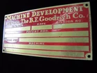 -BFG Tire Company Piece- Machine Development Dept of The B.F. Goodrich Co. Old Brass Nameplate Small Sign Equipment Tag please view all pictures for more information shows some wear with age noted measures approximately 2 1/8" by 4 3/8" check our store for more advertising items available for private inspection by appointment please view all pictures for more information and to judge condition for yourself. wear with age and use. please ask all questions before end of auction. available for private inspection. please feel free to contact us with any pertinent questions pertaining to the item. follow us and add us to your favorite sellers, we are always adding new items in our store. thank you for looking -dr24.dp- *AGED2PERFECTIONSTORE* SAVE US TO YOUR FAVORITES - CHECK BACK OFTEN, NEW ITEMS LISTED EVERY WEEK PLEASE NOTE: SHIPPING ONLY ON AUCTIONS NO LOCAL PICK UP AVAILABLE WE COMBINE/LOWER SHIPPING AS POSSIBLE ON MULTIPLE PURCHASES - ASK OR MESSAGE US FOR A COMBINED INVOICE BEFORE PAYING, ITEMS MUST BE PAID FOR UNDER SAME INVOICE FOR DISCOUNT *AGED2PERFECTIONSTORE* - FIND US AT AGED2PERFECTIONSTORE & AGED2PERFECTIONSTORE1&2