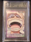 This is a Japanese-language One Piece CCG card featuring Monkey D. Luffy with alternative art. Manufactured by Bandai in 2024, it has a holographic finish and a standard card size. The card number is OP09-061, and it is made of paper. The card is a Leader card with a BGS grade of 9.5.