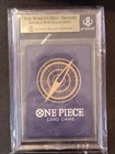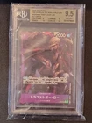 The product is a BGS 9.5 TRAFALGAR LAW OP09-069 R ALT ART ONE PIECE CARD in Japanese. It is a collectible card from the ONE PIECE CCG manufactured by BANDAI in 2024. The card features an alternate art of Trafalgar Law and is part of the standard card size. Made in Japan.