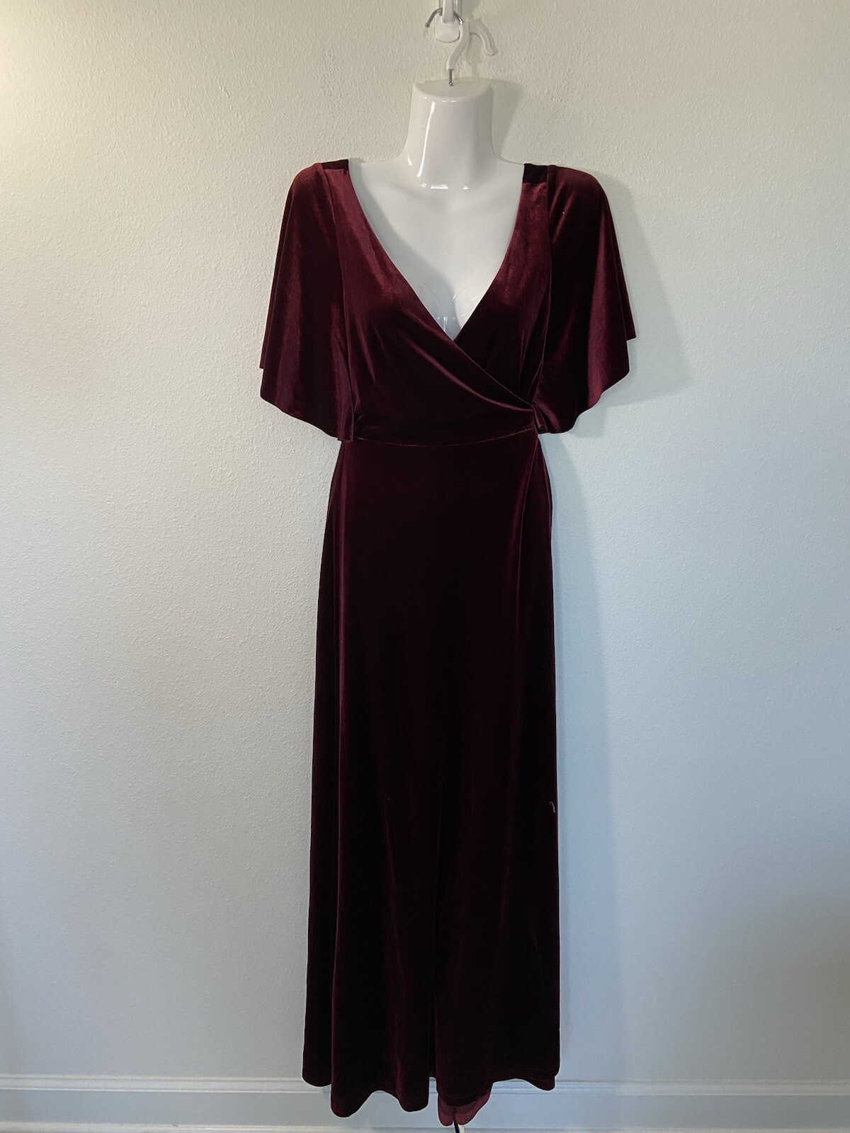 BHLDN Jenny Yoo Ellis Velvet Dress Size 0 Dark Berry Womens Open Back Party