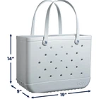 DETAILS & SPECS Gather your supplies and hit the beach with the Bogg Bag Original Bogg Tote. The EVA material affords durability, while the main compartment is spacious enough for your bear gear. The large and small insert bags fit small items such as cell phones and credit cards, and the handles allow for easy carrying. Features and Benefits Durable EVA construction Spacious main compartment stores your beach gear Large insert bag can fit cell phones, books and keys Small insert bag can fit change, credit cards and ID's Handles allow for easy carrying Specifications Rolling: No Activity: Beach Material: Durable EVA Product width (in.): 9 Product height (in.): 14 Water Resistant: Yes Strap/handle: Soft Hydration Compatible: Yes Product Type: Bags Capacity: 40 pounds Product length (in.): 19 Style: Tote Laptop/Tablet Compatible: No What's in the Box Bogg Bag Original Bogg Tote Two clear snap inserts