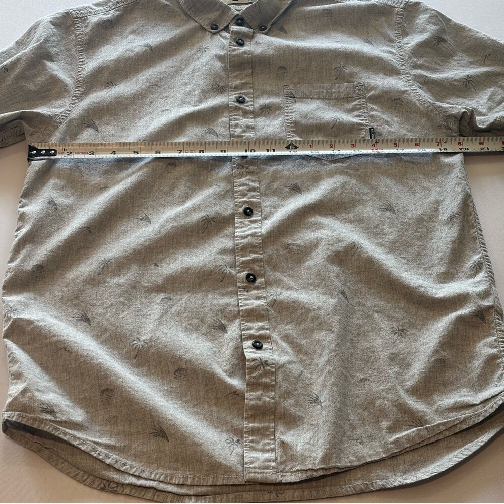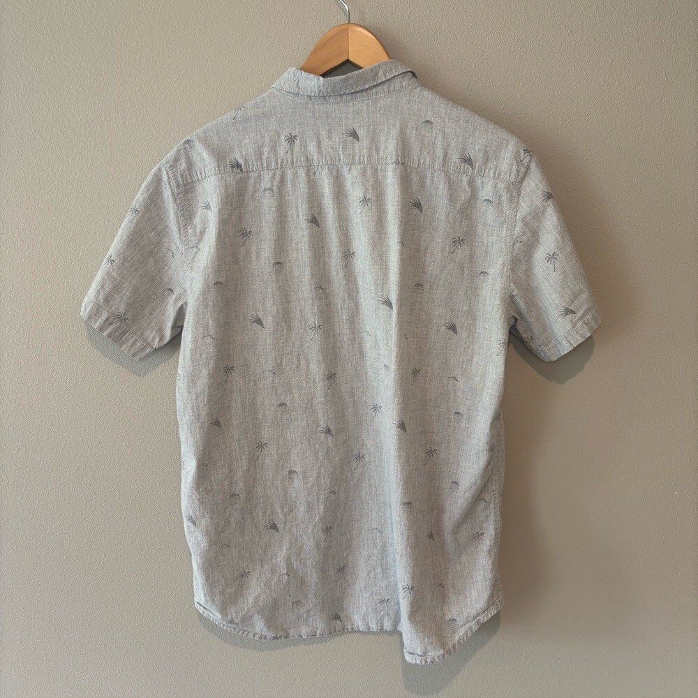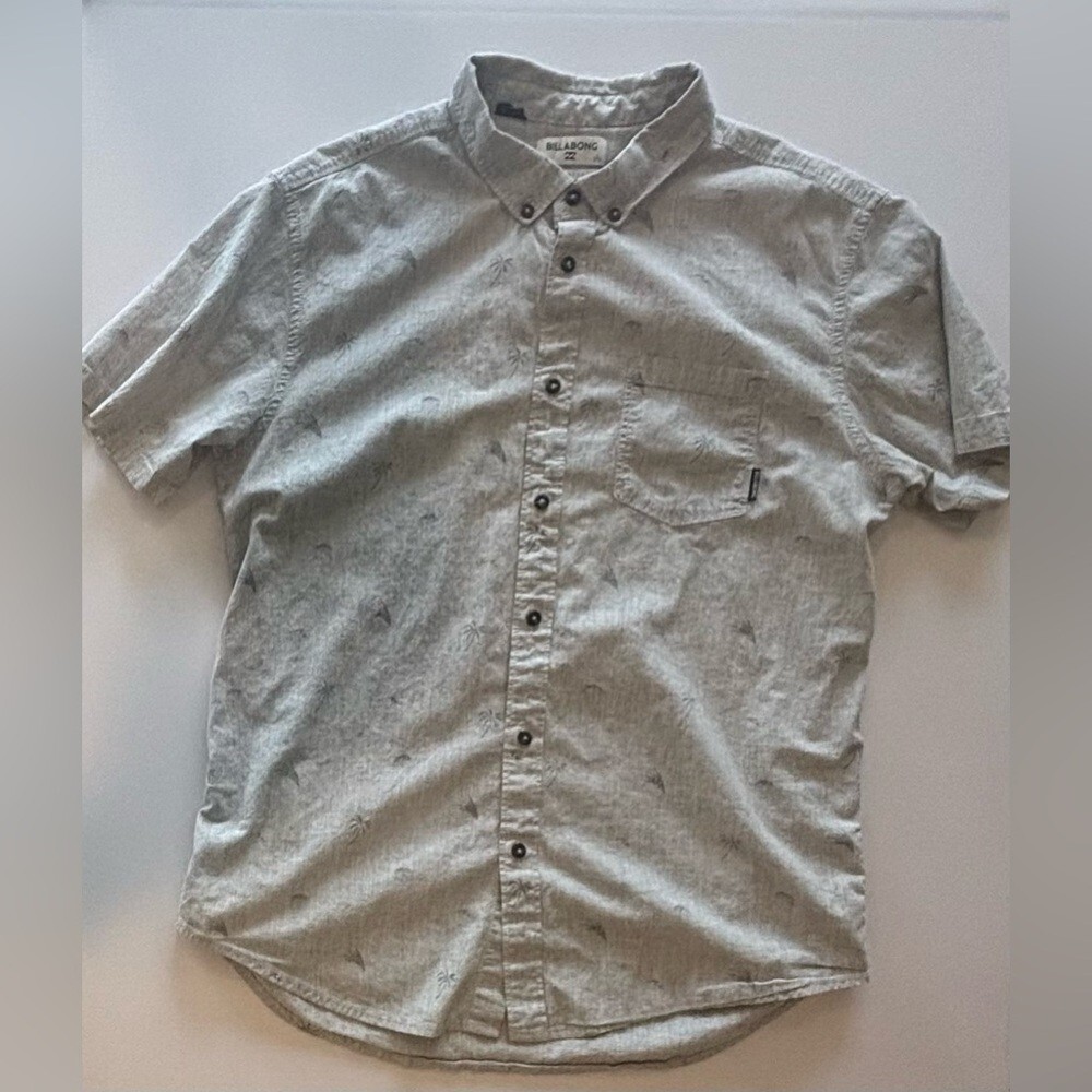 Billabong Men’s button down shirt Grey Large Palm tree print One pocket Collared Surfer 🏄 style Stretch material No call outs