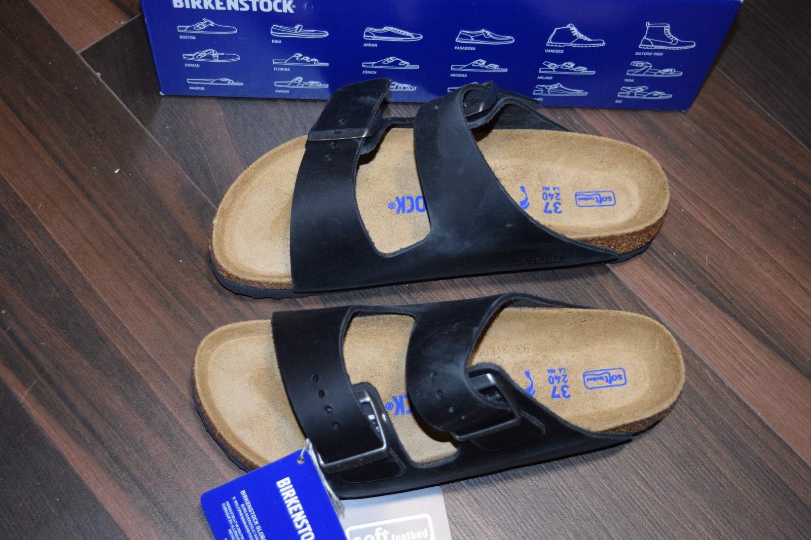 WELCOME TO GOODDEALS019 YOU ARE BIDDING ON A NEW PAIR OF BIRKENSTOCK ARIZONA OILED LEATHER NARROW FIT SANDALS. IF YOU HAVE NEVER OWNED A PAIR OF BIRKENSTOCK BEFORE. I RECOMMEND YOU TO TRY ON A PAIR IN PERSON BEFORE YOU ORDER ONLINE TO ENSURE YOU GET THE SIZING CORRECT. BIRKENSTOCKS ONLY RUN IN WHOLE SIZES. PLEASE MAKE SURE YOU KNOW YOUR SIZE BEFORE YOU PURCHASE. THE FOLLOWING IS JUST SOME INFORMATION THAT CAME OFF OF THE AUCTIONED ITEM ITSELF: SANDALS ARE NEW. COMES WITH EVERYTHING PICTURED. MAKE: BIRKENSTOCK MODEL: ARIZONA CONDITIONS: NEW, TAKE A LOOK AT THE PICTURES COLOR: BLACK Returns Policy: We accept returns only if the item is not as described.