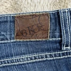 The BKE Buckle Culture Boot Cut Jeans for women in size 34 are a stylish and comfortable choice for everyday wear. Made from a stretchy cotton blend denim with a solid blue color, these mid-rise jeans feature a classic bootcut style that flatters your figure. The zip and button closure, along with the 5-pocket design, add both functionality and style to these versatile jeans that can be worn all year round. Perfect for casual outings or dressed up with heels, these BKE jeans from Buckle are a must-have addition to any woman's wardrobe. Waist measures 19 inches across Inseam measures 28 inches Pant leg opening measures 8.5 inches