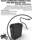 "BLACK COMMUTER PANNIER & RAIL" FIT FOR ROYAL ENFIELD NEW BULLET 350 - Express Shipping. COMMUTER PANNIER:- Seamless integration- engineered to fit prefectly and easily to your Royal Enfield Rigorous testing - tested on real road conditions for quality and durability COMMUTER PANNIER RAIL:- Designed for a perfect fit for the Black Commuter Pannier, this mounting kit consists of a rail and fixings to secure it to the motorcycle. It also features investment castings for robustness and peace of mind Product Info: Product Type : BLACK COMMUTER PANNIER & RAIL Fit To Make : NEW BULLET 350 Color : Black Placement on Vehicle : Rear Manufacture Part Number : KXA00042, KXA00076 Return Policy : Return will be Accepted Only Manufacturing Defect we will not accept return Encase of Fitment issue Shipments We do ship the items worldwide and it will take 7-8 days to reach final destination. If the item do not arrived and destination within this period so please contact us. We are not liable to pay any import duty or taxes, if the same charged by the customer?s country. If custom required in Buyer Country Buyer will be responsible to pay that Custom fee to clear the parcel, If buyer Denied refund will not be initiated in that case NOTE- Please make sure to provide your full address with your CORRECT contact phone number or mobile number to avoid Shipment delay due to insufficient address. Even Few shipment companies doesn't accept the PO Box address. So please try to give your complete address with Telephone number. Payments We accepted the payment through PayPal because it's easy way to online transaction. Feedback Leaving Negative or Neutral Feedback is not an easy solution of a problem,so please contact us if you have any questions or any complaints before leaving a Feedback, will assure you give a 100% solution. Your feedback is important for us to grow our business on eBay,so please do leave positive feedback. Our Guarantee & Timeline for Returns If you are not completely satisfied with your purchase, simply exchange it or return it to us for a refund within 7 days of the date of delivery. THANK YOU!!!