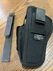 blackhawk size #3 Nylon concealment +mag holder holster ambidextrous IWB OR OWB. Can be quickly changed from R to L. Comes with retaining strap. Little to no use. If I said this was new, I could get away with it. Note: the widest inner width is about an inch so this won’t work with thick guns like the Springfield XD. Please make sure your gun is no more than an inch thick.