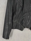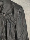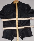BLANKNYC Jacket Womens Medium Black Faux Leather Moto Biker Asymmetrical Zip Condition: Gently worn, no visible flaws Shell: 60% polyurethane, 40% viscose; Lining: 97% polyester, 3% spandex Asymmetrical front zipper closure with additional zipper details at chest, waist, cuffs, and back Classic motorcycle/biker style with pointed oversized collar Faux leather construction for a cruelty-free alternative to real leather Black color, fitted silhouette, lightly lined for comfort Brand: BLANKNYC Tag Size: Medium (Womens) Model/Style #: 13U-9057NO Made in China Care: Wipe clean with damp cloth only; do not dry clean, iron, machine wash, bleach, or tumble dry Please refer to photos for flat measurements for best fit