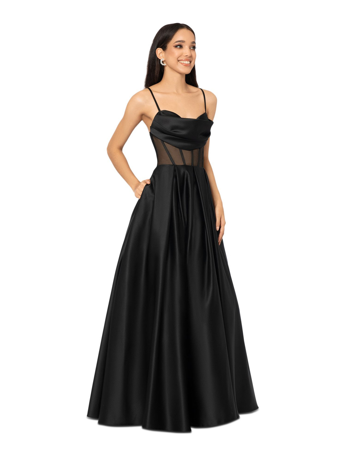 Absolutely stunning dress—the black tulle and padded design give it a luxurious, semi-formal look perfect for events. The cowl neck and spaghetti straps add elegance, and though there’s a small rip (as noted), it’s barely noticeable and easily fixable. The fit is flattering, and the pleated details make it stand out. A glamorous steal for the price!