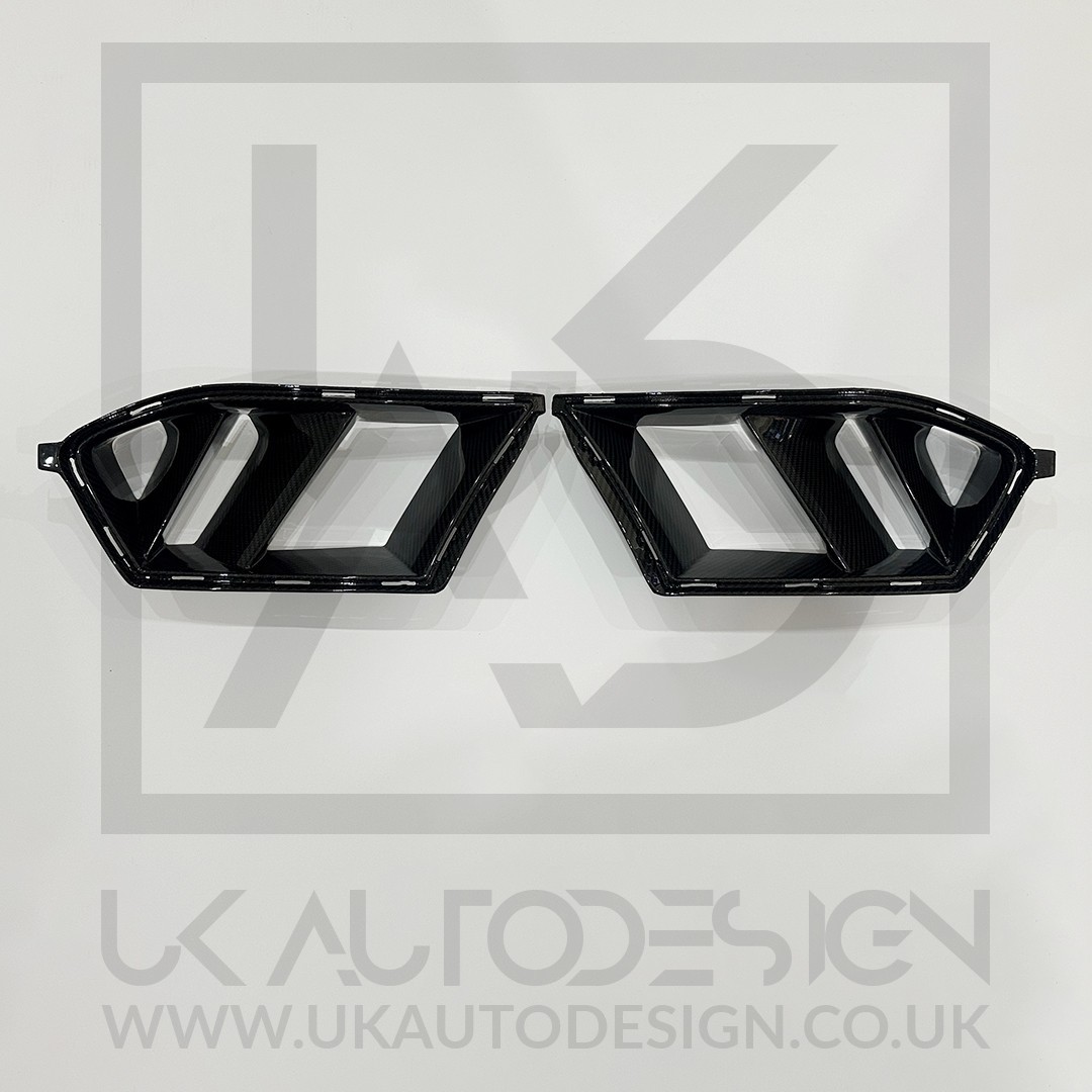 BMW M3/M4 Dual Slat Pre-Preg Carbon Fibre Air Inlet Frames (G80/G81/G82/G83) Features Air Inlet Frame Replacements Dual Slat Specification Materials: 2x2 Twill Weave 3k Pre-Preg Carbon Fibre Finish: Gloss UV-Resistant Clear Coat Compatible Models BMW M3 (G80/G81) | 2021+ BMW M4 (G82/G83) | 2021+ What's In The Box? 2 x Air Inlet Frames (Left and Right Side) Installation Professional installation highly recommended