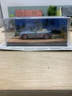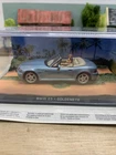 This BMW Z3 model car is a replica from the James Bond movie "Goldeneye" in a 1:43 scale. The die-cast car is in a vibrant blue colour, featuring a convertible design from the 1990s. It comes with a base and a plastic lid for display, making it a great addition for collectors or fans of the James Bond series. The detailed model includes a case and is recommended for ages 14 years and above.