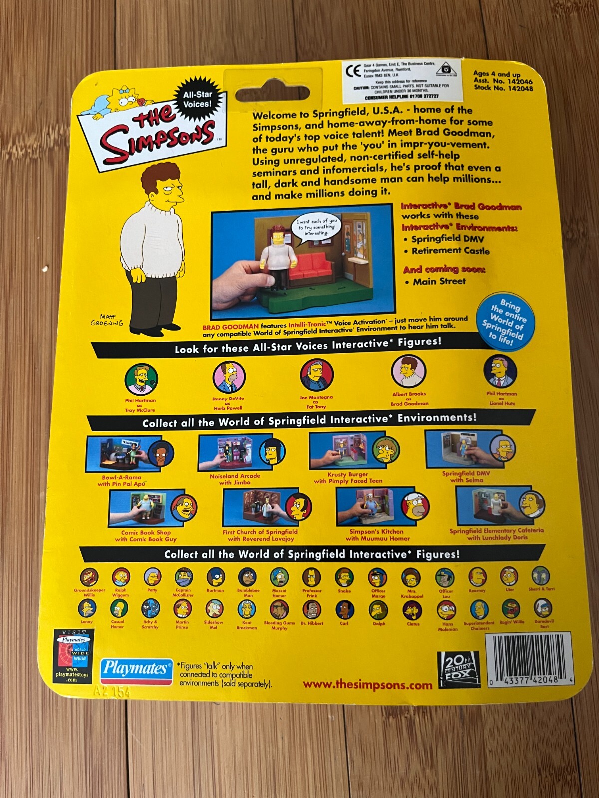 BNIB PLAYMATES INTERACTIVE THE SIMPSONS ALL STAR SERIES BRAD GOODMAN FIGURE WOS This product data sheet is originally written in English. YOU ARE BUYING A BRAD GOODMAN ACTION FIGURE MADE BY PLAYMATES IN 2000 - FROM THE SIMPSONS INTERACTIVE WORLD OF SPRINGFIELD SERIES EXPERTLY DETAILED AND FULLY ARTICULATED. THIS IS A VERY COLLECTABLE PIECE OF TV MEMORABILIA 6 INCHES TALL COMES BRAND NEW IN ORIGINAL PACKAGING YOU GET THE SAME FIGURE AS THE ONE IN THE PICTURE CHECK OUT ALL THE OTHER ACTION FIGURES I HAVE FOR SALE IN MY SHOP AT GREAT PRICES, WITH MASSIVE POSTAGE DISCOUNTS STORE STILL OPEN AS NORMAL, ITEMS WILL BE SHIPPED WITHIN 24 HOURS OF PAYMENT YOU ARE BUYING A BRAD GOODMAN ACTION FIGURE MADE BY PLAYMATES IN 2000 - FROM THE SIMPSONS INTERACTIVE WORLD OF SPRINGFIELD SERIES EXPERTLY DETAILED AND FULLY ARTICULATED. THIS IS A VERY COLLECTABLE PIECE OF TV MEMORABILIA 6 INCHES TALL COMES BRAND NEW IN ORIGINAL PACKAGING YOU GET THE SAME FIGURE AS THE ONE IN THE PICTURE CHECK OUT ALL THE OTHER ACTION FIGURES I HAVE FOR SALE IN MY SHOP AT GREAT PRICES, WITH MASSIVE POSTAGE DISCOUNTS STORE STILL OPEN AS NORMAL, ITEMS WILL BE SHIPPED WITHIN 24 HOURS OF PAYMENT Brand Playmates Toys Type Action Figure Theme The Simpsons Features Interactive Franchise The Simpsons TV Show The Simpsons Character Family The Simpsons EAN Does not apply