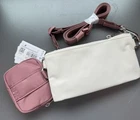 Brand new Lululemon dual pouch sling with adjustable straps in pink/white color.