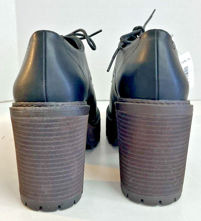 BNWT Torrid Women's Laced Heeled Oxford Black Platform Shoes Size 10.5 Shoes are brand new with tags attached, never worn. Did not come with a box. Description: Step into confident, classy style with these Torrid Lace-up Heeled Oxford Platforms in black, size 10.5. Featuring a sleek, polished oxford upper with modern lace-up detailing and a bold stacked platform heel, these shoes blend retro charm with contemporary edge. Perfect for adding height, attitude, and a stylish twist to your favorite outfits-from jeans and a tee to skirts and dresses. Features: Brand: Torrid UPC: 43155234 Style: Lace-up Oxford Heeled Platform Color: Black Size: Women's 10.5 Heel Height: Approx. 4: (platform) Fit: Designed for comfort in wide width silhouettes (Torrid Standard) Condition: Brand New Material: Faux leather upper, cushioned insole, sturdy outsole Why you'll love it: These platforms give you that instantly lifted, elongated look while still being comfy enough to walk in. Chic, bold, and oh-so-versatile-they make every outfit feel like a moment. Fun Fact: The classic Oxford shoe originated in the 1800s at Oxford University — once a staple of academic style, now a fashion favorite worn by celebrities, musicians, and vintage lovers alike . A note from your seller, All Autumnz Attic items come from a smoke-free, pet-free home. Some are locally sourced, carefully cleaned and refreshed before being listed. We encourage you to review all photos and read the full item description, and please don’t hesitate to reach out with any questions or concerns. We gladly consider the most reasonable offers and typically ship within 24 business hours. Every item is packaged with the utmost care to ensure it arrives safely. Whenever it applies, we combine shipping, and if your actual shipping cost is lower than what you paid, we will notify you and send a refund for the difference. Be sure to check your package for a little surprise, our way of saying thank you. Please do NOT open your package with a knife as it may cut or damage the product inside. You are our highest priority, and we truly appreciate your support. Please leave feedback to let us know how we’re doing, and don’t forget to check back often—we’re always adding new treasures. Thanks for shopping by Autumnz Attic.