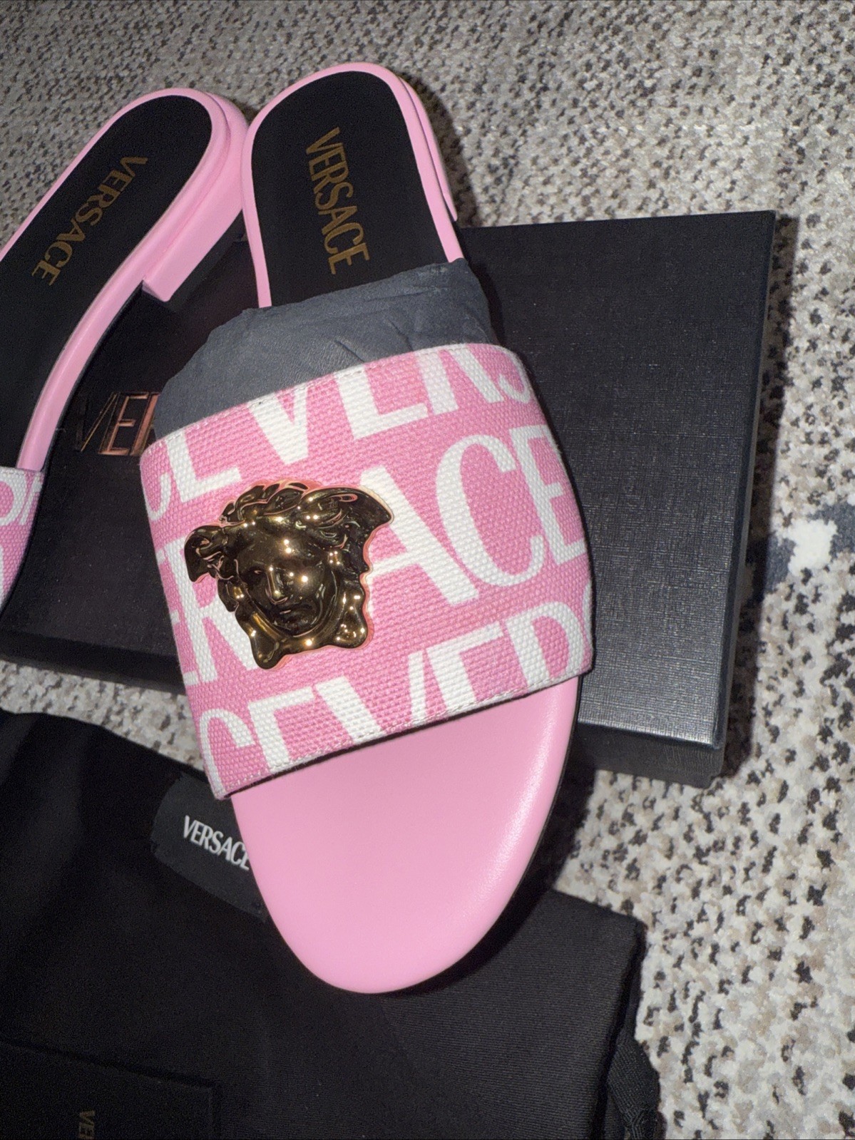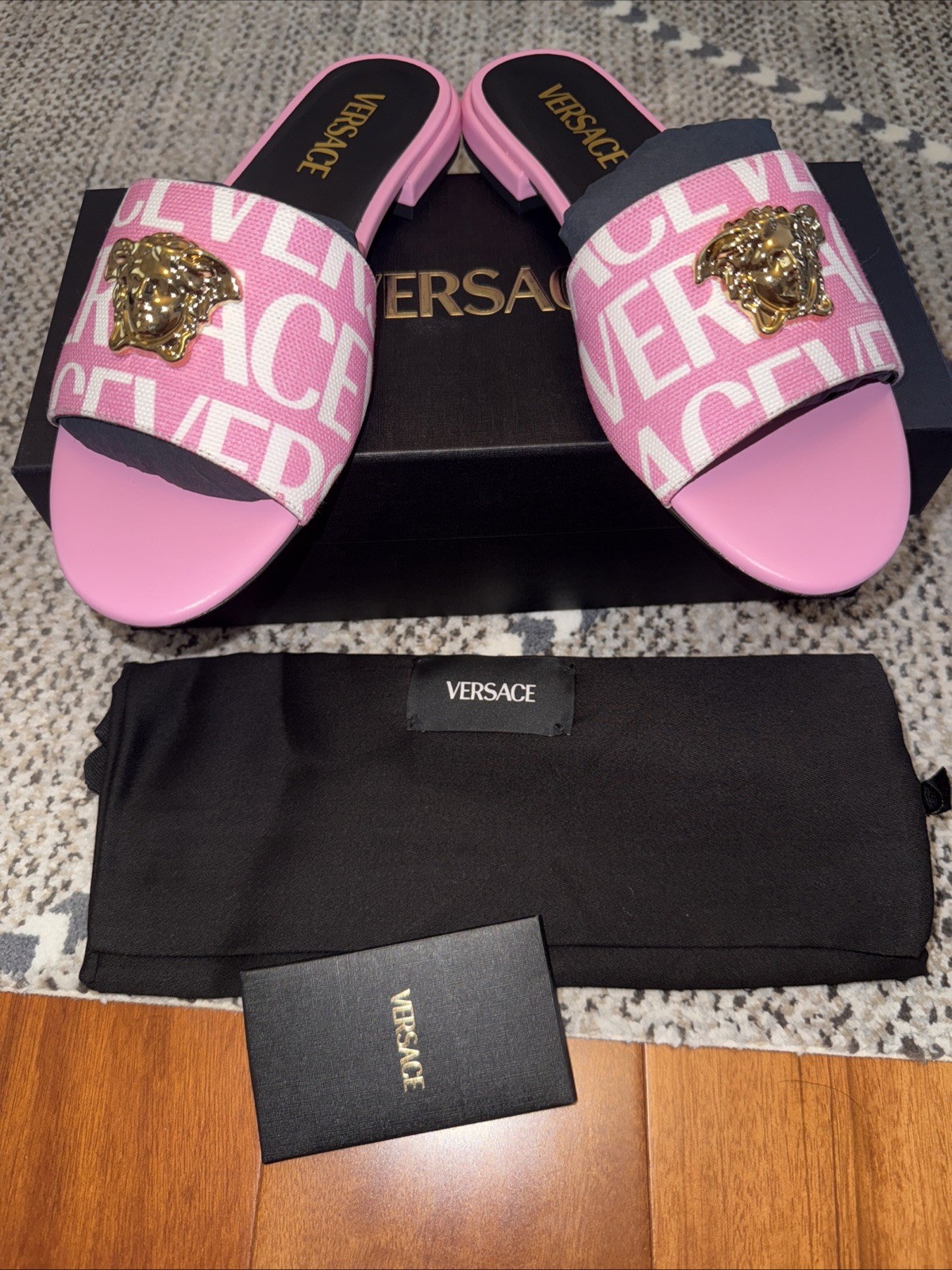 The seller was very polite, helpful and responded to my questions in a timely manner. I am so thrilled to have received this pair of Versace.They are as described, brand new and gorgeous. The value was phenomenal and the shipping time was adequate. The shoes had their original packaging and Versace cotton bag. All in all I am very satisfied and would definitely recommend this seller