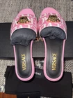 The BNWT Versace La Medusa Women's Flats in Rosa Pink, Size 37.5 US 7.5, are a stylish and comfortable choice for women looking for a slip-on shoe with a luxurious touch. Made in Italy with a canvas upper material, these flats feature the iconic Versace logo as a pattern and come in a vibrant pink color. The standard shoe width and comfort features make them perfect for everyday wear or special occasions. Experience the elegance and quality of Versace with these trendy and fashionable flats.