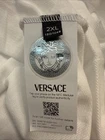 The product is a brand new with tags Versace white viscose collared men's polo short sleeve t-shirt in size 2XL. Made of 80% viscose and 20% polyester, this stylish and high-quality shirt features a classic collared neckline and short sleeves, perfect for a polished yet casual look. The iconic Versace branding adds a touch of luxury to this wardrobe essential, making it a versatile and fashionable choice for any man's closet.