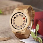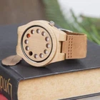 1. Unique Great Craftsmanship Design -- 12 Holes Timer Design, Fashion Simple Eco-friendly bamboo wooden watch with Natural looking, Beautiful texture and Lightweight to hold. 2. Imported Japanese Quartz Movement -- Miyota 2035 Quartz Movement & Sony battery SR626SW which powers the electronic circuit and allows the quartz crystal to oscillate in-time with the circuit's electric pulses. Best of all, there is no necessary winding up. 3. Handmade Bamboo Wood Watch -- Using Natural Wood, No Paint (Non-toxic Hypo-allergenic) The wood is real and it is well polished. The leather band is put together very carefully and it is not scratchy. 4. Adjustable Wood Band -- BOBO BIRD Watch has flexible bamboo link bands that expand up to 8 ½ inches. A customized fit can be achieved when the screwed pins are adjusted by your jeweller or local watch repair shop. 5. Excellent Gift Box & 100% Guaranty & High Quality Service -- Carefully prepared & packaged. Best Gift for friends, loved ones, relatives. 1 year after-sale service and full support within 24 hours.