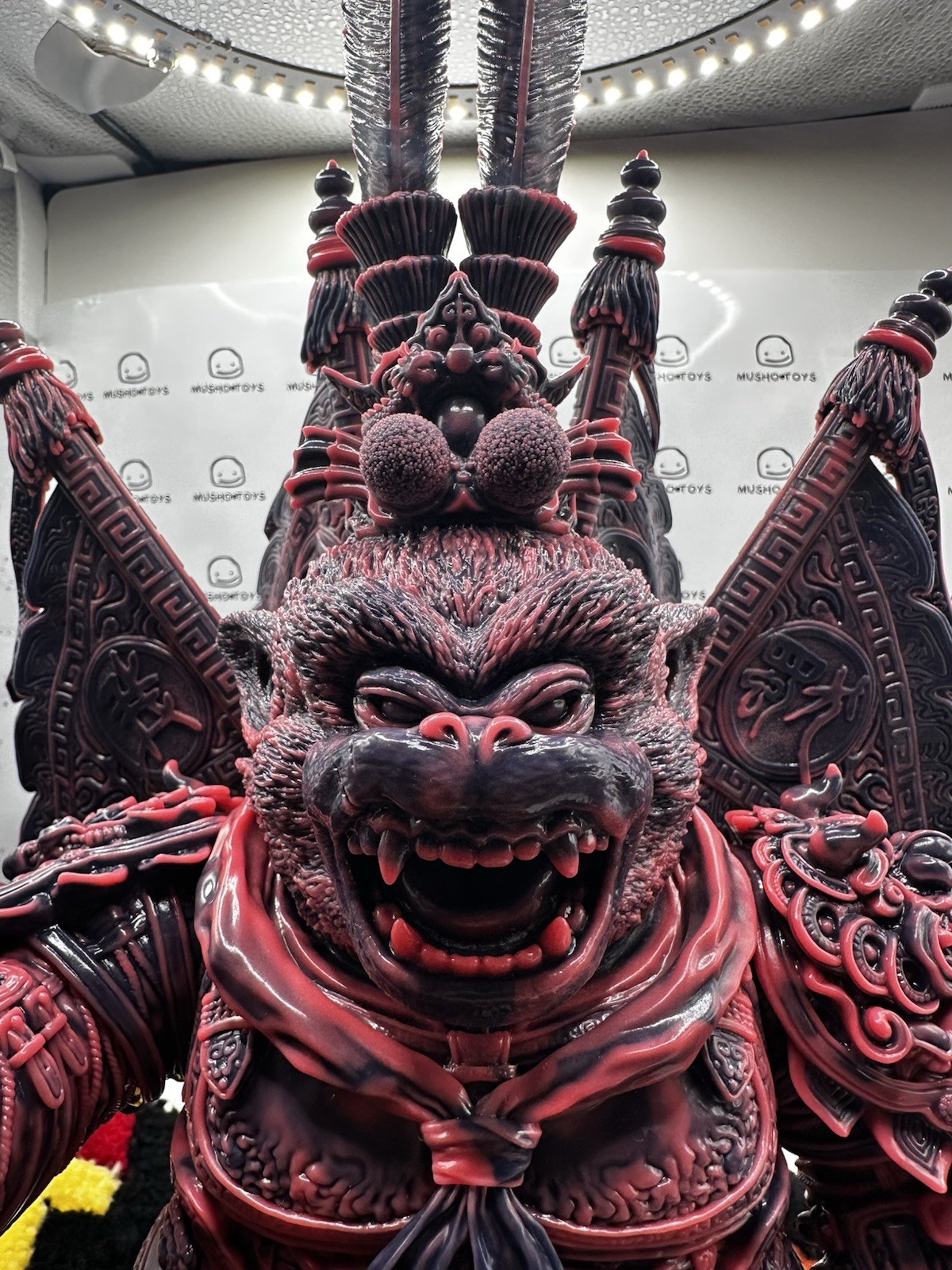 BODA Studio Monkey King “Sun Wukong” Sofubi Figure – Mamey Red Edition Official designer sofubi figure by BODA Studio, featuring the legendary Monkey King Sun Wukong in a distinctive mamey red (peach/salmon-toned) colorway. This piece was released as a 2025 WF Limited item and produced in limited quantities, making it a highly collectible work for serious sofubi and designer art toy collectors. The sculpt showcases exceptional craftsmanship, with intricate armor details, winged elements, a dynamic warrior pose, and a dramatic head crest. The figure measures approximately 40 cm (15.7 inches) in height, measured up to the tip of the head crest, giving it a strong and commanding display presence. Details: • Artist / Studio: BODA Studio • Character: Monkey King – Sun Wukong • Material: Sofubi / Soft Vinyl • Colorway: Mamey Red (Peach / Salmon tone) • Height: Approx. 40 cm / 15.7 inches (to top of crest) • Release: 2025 WF Limited • Condition: Displayed only, excellent condition A rare and visually striking sofubi figure that stands out as a centerpiece in any kaiju or designer art toy collection.