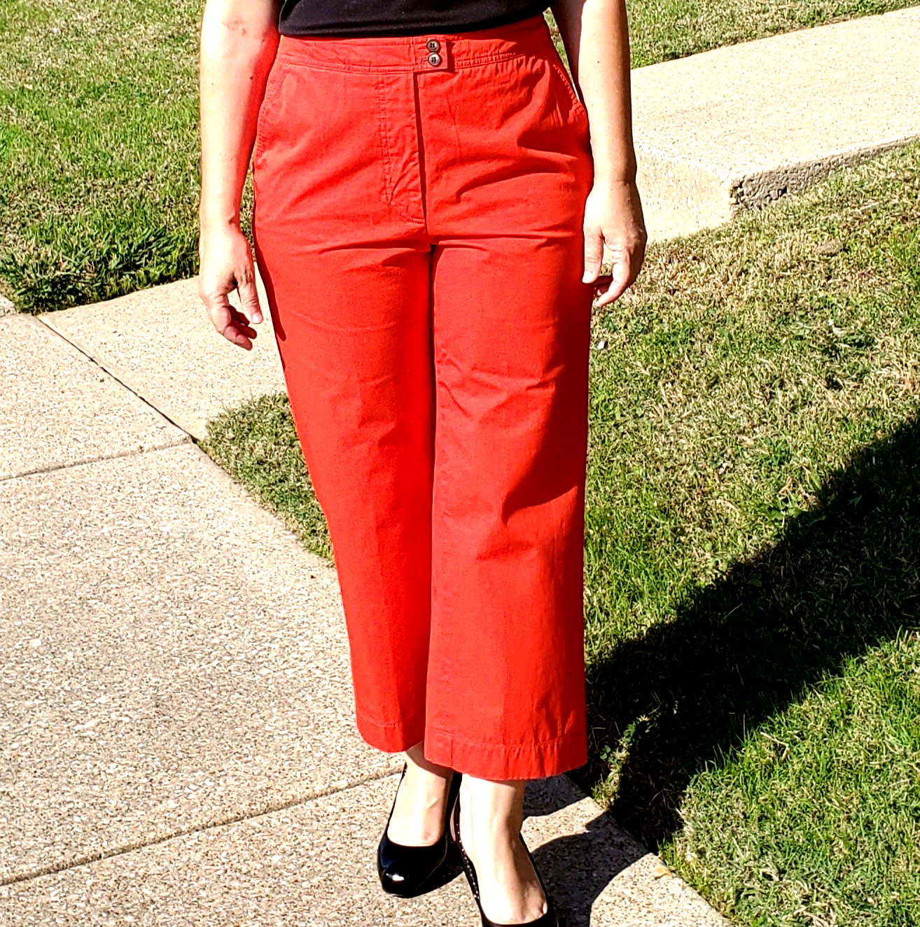 The Boden Preppy Women's Red Crop Trousers Pants in size 6 feature a flat front design with pockets, making them perfect for a casual occasion. Made from cotton fabric, these cropped pants have a 12-inch rise and a 24-inch inseam, offering a regular fit for comfort. The straight leg style and 32-inch waist size make these pants a versatile option for the summer and spring seasons, with a preppy theme that adds a touch of style to your wardrobe. Machine washable, these pants from Boden are a stylish and practical choice for any fashion-forward woman.