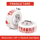 PREMIUM ADHESIVE: 4 Roll of 110 Yards, 2.4 mil thick of high performance fragile packaging tape with a small easy use dispenser for free. High adhesion and holding power resists popping for a tight seal throughout the supply chain. Suitable for home, commercial or industrial use in any climate. This storage and shipping box tape can firmly stick onto any surface EASY TO USE: Our 2.4 mil thick fragile tape is very good in thickness and toughness, will not tear or split easily. Provides excellent holding power for heavy-duty packaging and shipping. These fragile shipping labels are truly great for anyone who ships and handles fragile items especially for glass, collectables, electrical, houses, computers and computer parts, and in manufacturing industries or anything that needs to be handled with a little extra love EXTREMELY DURABLE: Our FRAGILE packing tape offers excellent holding power for packaging and shipping, easy to use shipping tape that will not split or rip during application. High edge tear and split resistance make it ideal for general industrial packaging applications and boxes weighing up to 80 pounds UNIVERSAL STANDARD SIZES: 2 inch wide; 110 yards length; 2.4 mil thickness. The diameter of core is 3 inch and perfectly fit standard 2inch hand-held dispenser. It will help your warehouse manage the sealing process quick and efficient. Adhesive sticks to smooth and textured surfaces especially on cardboard and carton materials MULTIPLE USE: Our Fragile Tape tape that can be used for home removals, shipping and mailing, for storing and organizing household items. Handle With Care Fragile in bright clear and easy to read text on label. Brings needed attention to your package so it is handled with the care that is needed. It's help reduce the risk of fragile items getting damaged during shipment