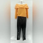 These women's pants are a premium, animal-conscious alternative to genuine leather, with a versatile style that can be dressed up or down. The pants are made from a stretchy vegan leather material that follows your body's natural curves, providing a flattering fit that enhances your figure. Their soft and supple coating adds to their elegance and makes them super comfortable to wear. These leather-look pants are the perfect addition to your wardrobe, offering a chic and cruelty-free option for any occasion. NWT