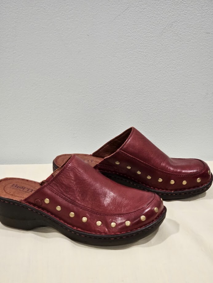 BORN Majesty Women's RED Leather Clogs Rivets Studs 7W. Ships from a smoke free home! Please see all photos for exact item condition. Thank you for checking out my store! All items are shipped within 1 or 2 business days. Make a bundle to save on shipping cost.
