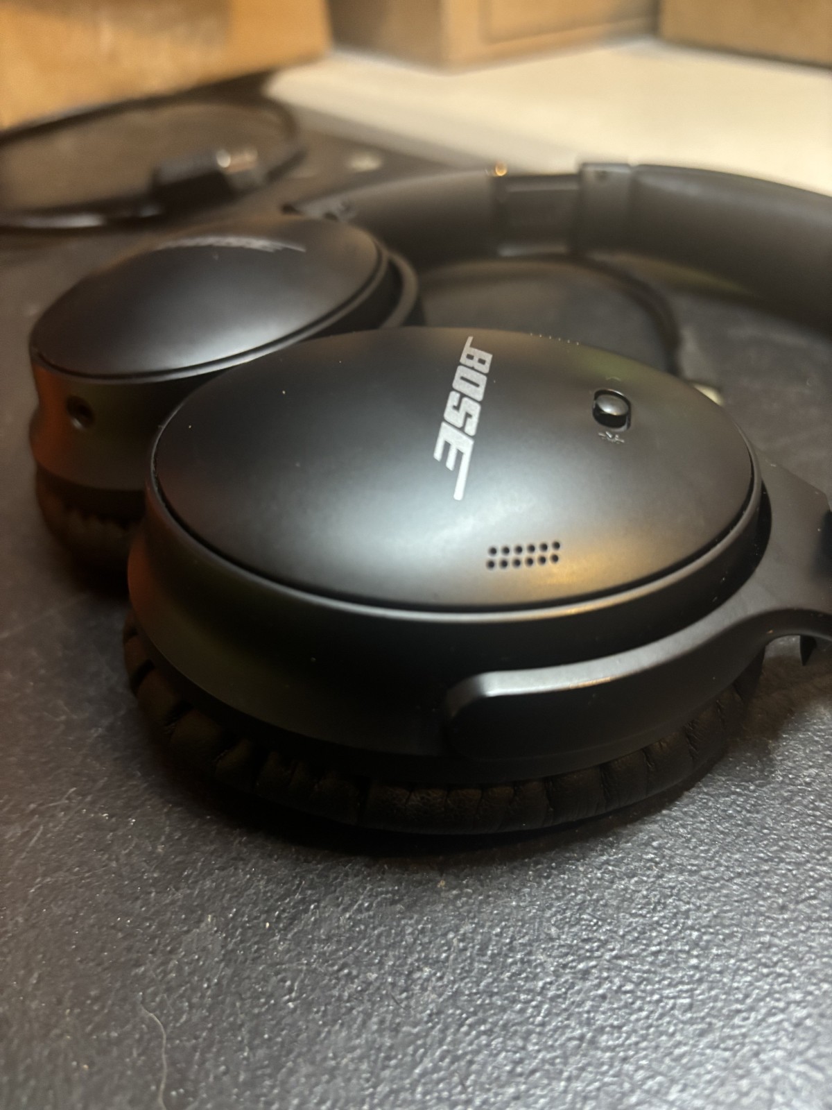 The Bose QuietComfort 45 Wireless Over-The-Ear Headphones in black (model 437310) offer premium sound quality and comfort. With wireless connectivity, these headphones provide freedom of movement while maintaining a high-quality listening experience. The over-the-ear design and noise-cancellation features make these headphones ideal for both music lovers and those looking to block out external distractions. The sleek black color adds a stylish touch to the overall design, making them a practical and fashionable choice for audio enthusiasts. USED ITEM IN GOOD CONDITION - TESTED - WORKING