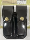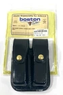 BRAND NEW! FAST FLAT RATE SHIPPING BOSTON LEATHER DOUBLE MAG HOLDER 9mm / 40 CAL CLARINO WITH GOLD BUTTONS MATERIAL & COLOR: LEATHER - BLACK FINISH: CLARINO (HI-GLOSS) HARDWARE: GOLD COLORED (BRASS) BUTTONS MODEL# 5601-2-GLD CONDITION: BRAND NEW HOLDS MAGAZINES EITHER HORIZONTALLY OR VERTICALLY ACCOMMODATES DOUBLE STACKS 9MM OR .40 CALIBER TOP GRAIN LEATHER FAST FLAT RATE SHIPPING!!! Powered by SixBit's eCommerce Solution