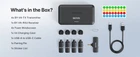 Universal Wireless System: BY-V4 wireless lavalier microphone offers freedom from wires, allowing seamless recording, shooting, and video production in various scenarios. The lapel microphone wireless has a 360° rotatable clip for easy attachment to your clothes, giving you hands-free recording capabilities. With 2.4GHz wireless transmission technology and a stable audio signal range of up to 650 feet, you can capture clear recordings and shoot videos from greater distances, both indoors and outdoors. Plug and Play: Enjoy a hassle-free setup with our plug-and-play wireless lavalier mics. Remove the wireless lav mics from the charging case—no need for adapters, Bluetooth, or applications. Compatible with Cameras DSLR Camcorder, etc. Intelligent Noise Cancellation: BOYA BY-V4 microphone kit features dual noise cancellation. The wireless lapel microphone allows easy one-click control of noise cancellation on the transmitters. Meticulously equipped with an advanced foam windscreen that highly restores your voice. With a signal-to-noise ratio of 80dB and a 48kHz/16bit sample rate, it ensures high-definition, lossless audio recording. The tiny microphone reduces background noise and delivers clear, crisp audio in any environment. Smooth switching between 2TX and 4TX: The V4 wireless mic for camera receiver supports two recording modes: 2TX and 4TX. You can switch between them using the Mode Switch and Pairing buttons on the receiver. Note: Switching between 2TX and 4TX modes is only possible when the receiver is connected to the camera via a 3.5mm audio jack. Hi-Fi Studio-Grade Sound Quality: The lav mic records in a 48kHz/16bit audio format, capturing sound with precision.With an 80dB signal-to-noise ratio, it delivers clean audio with minimal background interference.It can also handle up to 120dB Sound Pressure Level, making it ideal for recording in environments with loud or high-pitched sounds. Extended 12H Battery Life: The wireless clip-on microphone provides up to 6 hours of working time when fully charged. The compact charging case can fully charge the entire set twice, with each charge taking 2 hours. With the charging case, the mobile version has a battery life of 12 hours. No more worrying about low battery situations. Buyer pays flat $8 for USPS Priority Mail shipping.