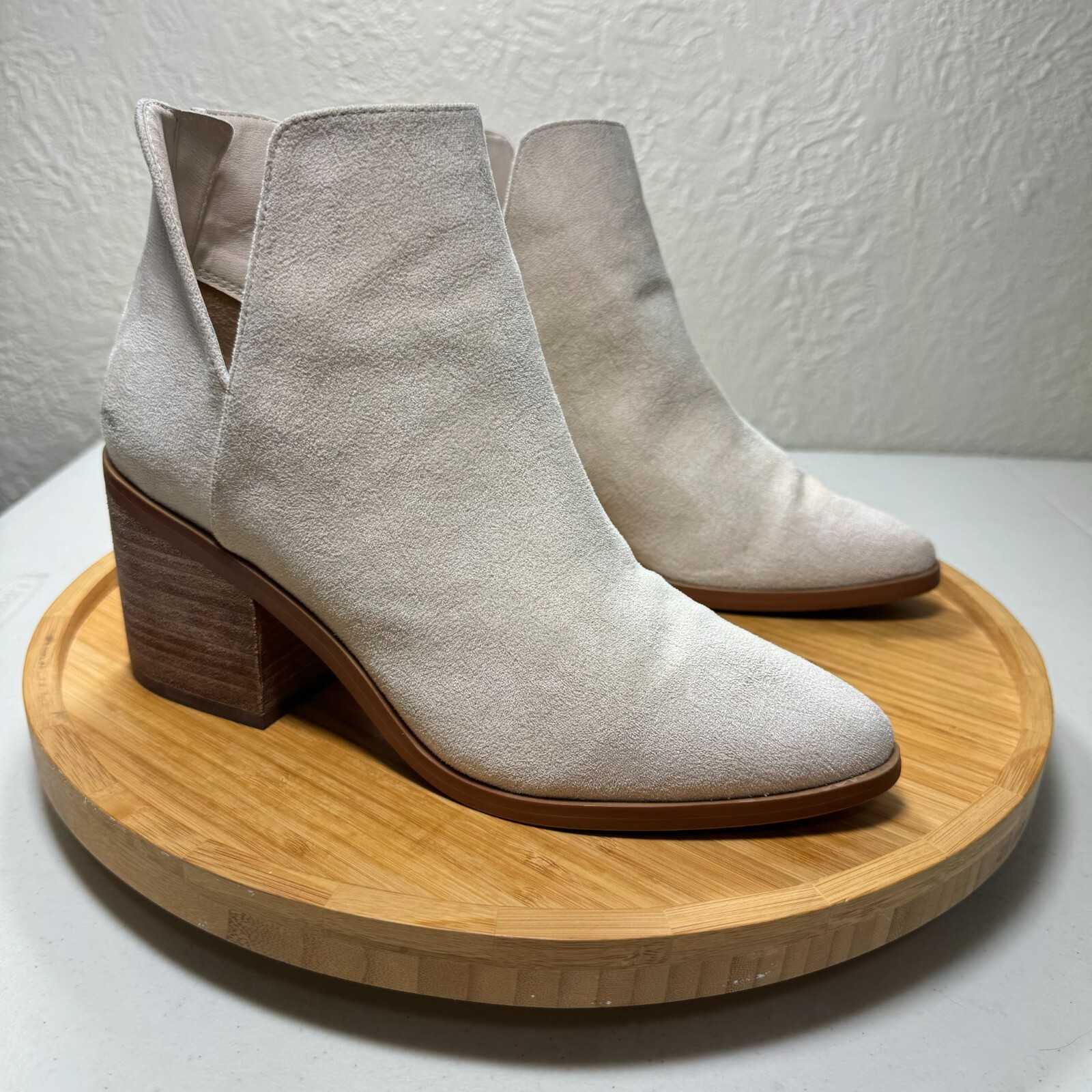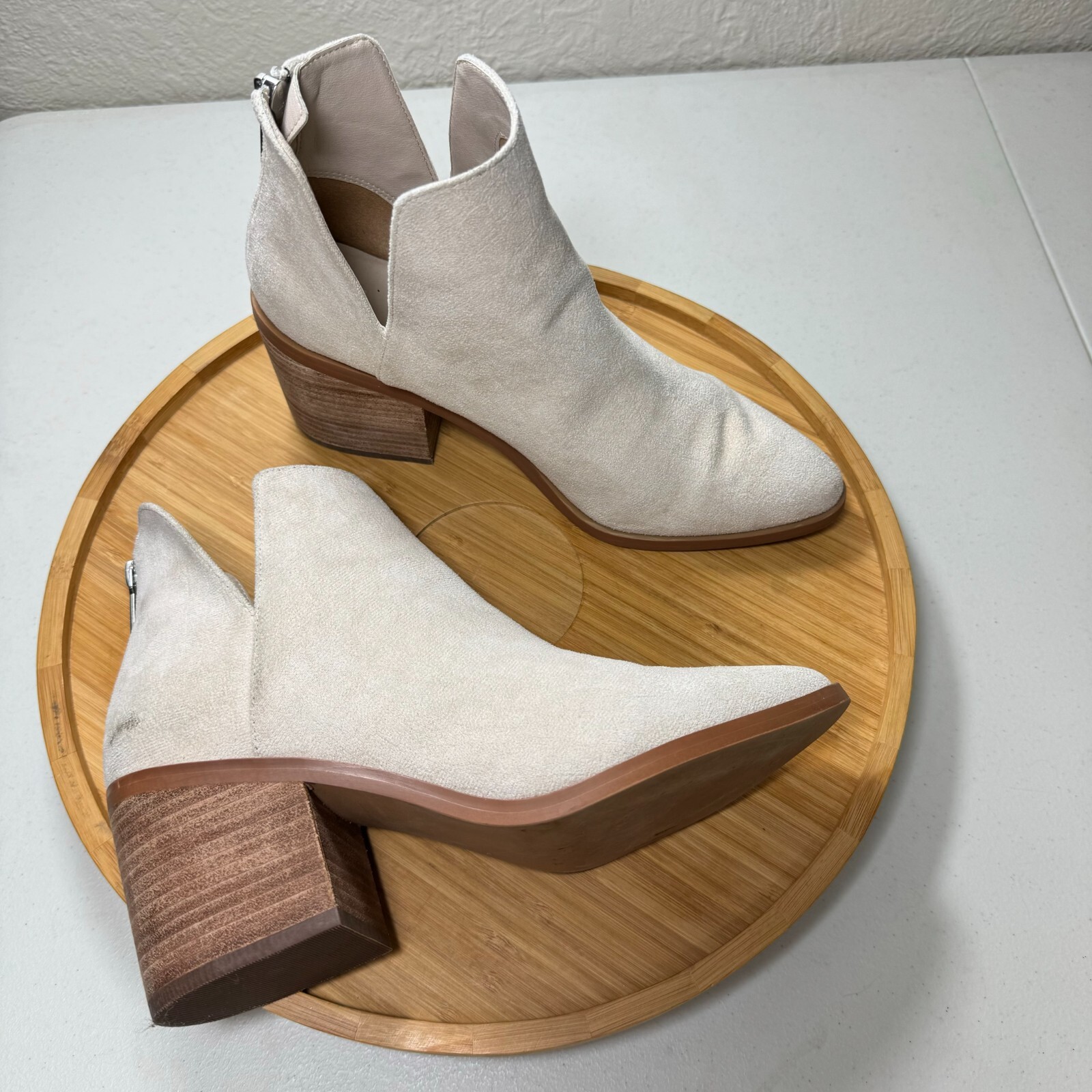 Item For Sale: BP Brynne Bootie Ankle Boot 7.5M Ivory Cut Out Pointed Toe Block Heel Nordstrom Women's size 7.5M Ivory, off white cream color Faux suede, fabric upper Pull on style with cut out accents Heel zipper accent Pointed toe 3" block heel Item Condition: There are several marks and scuffs on the upper. Please see pictures for a detailed view of the condition. Structurally, these shoes are in excellent condition, and other than the scuffs and marks, there are no other flaws. Shipping Information: Purchases are shipped the next business day after full payment is received, and on occasion an item purchased early in the day may end up shipping out that same day. The shipping service used will depend on the specific weight and dimensions of the item, but the most commonly utilized services are USPS First Class, USPS Ground Advantage, or USPS Priority Mail. If this is a book purchase, USPS Media Mail is used. Free returns are accepted for any reason within 30 days of purchase. The return shipping is free to the buyer. Once the returned item has been received, you'll be issued a refund for the original item cost (not including the original shipping cost). Store Information: Thank you for supporting my small business! Providing affordable, quality products and top-notch customer service is my top priority. If you have any concerns about an item you receive, please don't hesitate to reach out. I'm always happy to address any concern you may have.