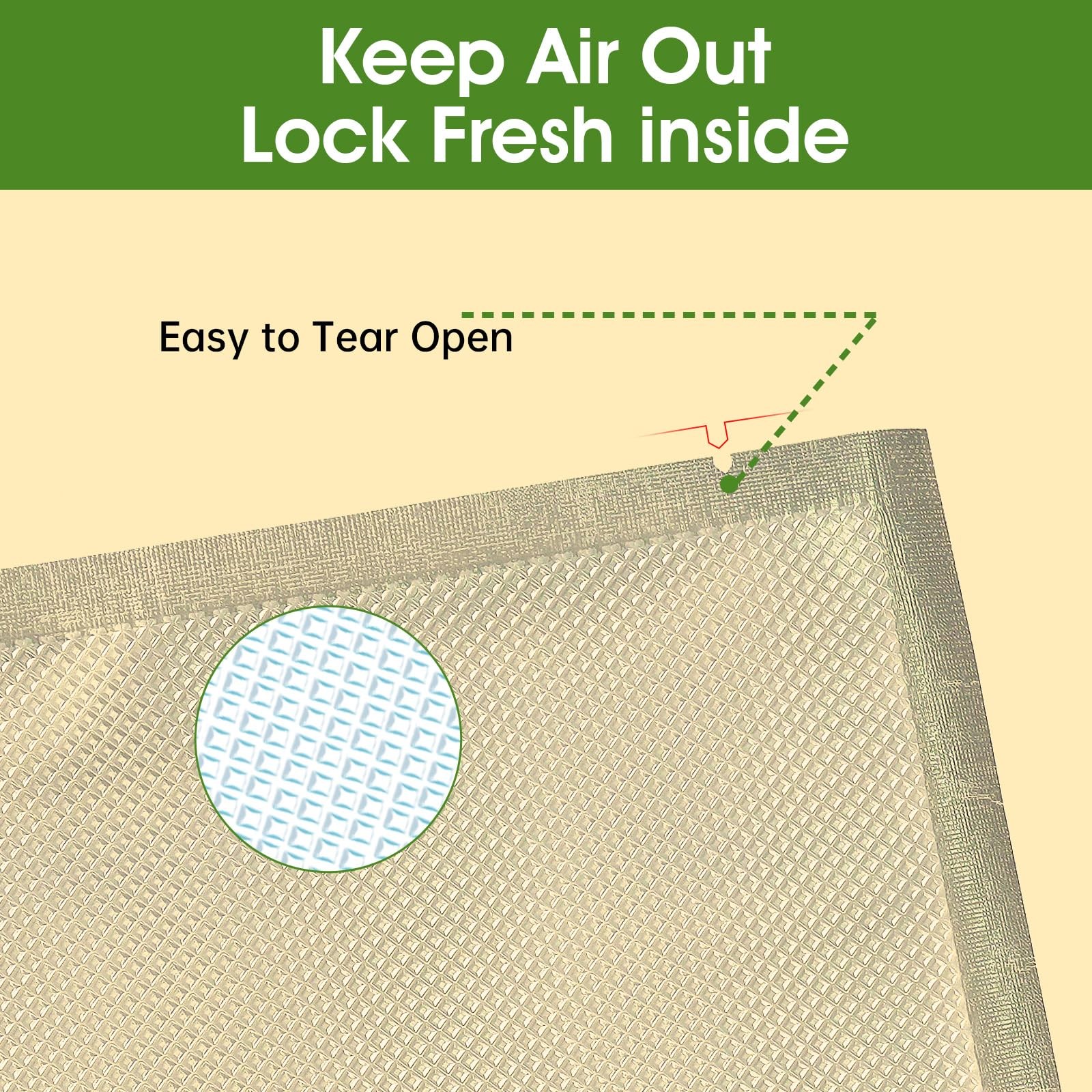 150 Count Pre-cut 50 Gallon 11" x 16" and 50 Quart 8" x 12" and 50 Pint 6" x 10". The advanced packaging technology utilizes nine layers and co-extruded barrier blown film to create a highly protective and durable material that prevents oxygen and moisture from penetrating, thus extending the shelf life of sensitive products. 【100 Count Gallon 11" x 16"】Suitable for storing a variety of foods, such as meat, seafood, vegetables, dried fruits, etc., meeting the diverse needs of daily food preservation in your family. The Gallon 11x16 inches is especially convenient for storing larger pieces of food, making the organization in your refrigerator more tidy and orderly. 【Safety】BPA Free vacuum sealer bags for food to minimize their exposure to harmful chemicals and ensure a safer fresh keeper experience. 【Durable & Reliable Sealing】vacuum storage bags food are made of nine layers and co-extruded barrier blown film & single side embossed dotted that ensures create a highly protective and durable material that prevents oxygen and moisture from penetrating, thus extending the shelf life of sensitive products and puncture prevention 【Tips】Ideally you should place the embossed side down, but smooth side up gave the best possible vacuum seal. Make sure the bag is large enough to easily vacuum and seal the item. When operating the vacuum sealer, be sure the bag passes through the sealer flat, with a firm seal and no air leakage. 【Good Compatibility】Machine Compatibility: Most well-known vacuum sealer brands support the use of embossed vacuum bags, such as Foodsaver, Breville, Anova, etc. Reusability: Our embossed vacuum bags can be reused after cleaning, which enhances their practicality and economy.