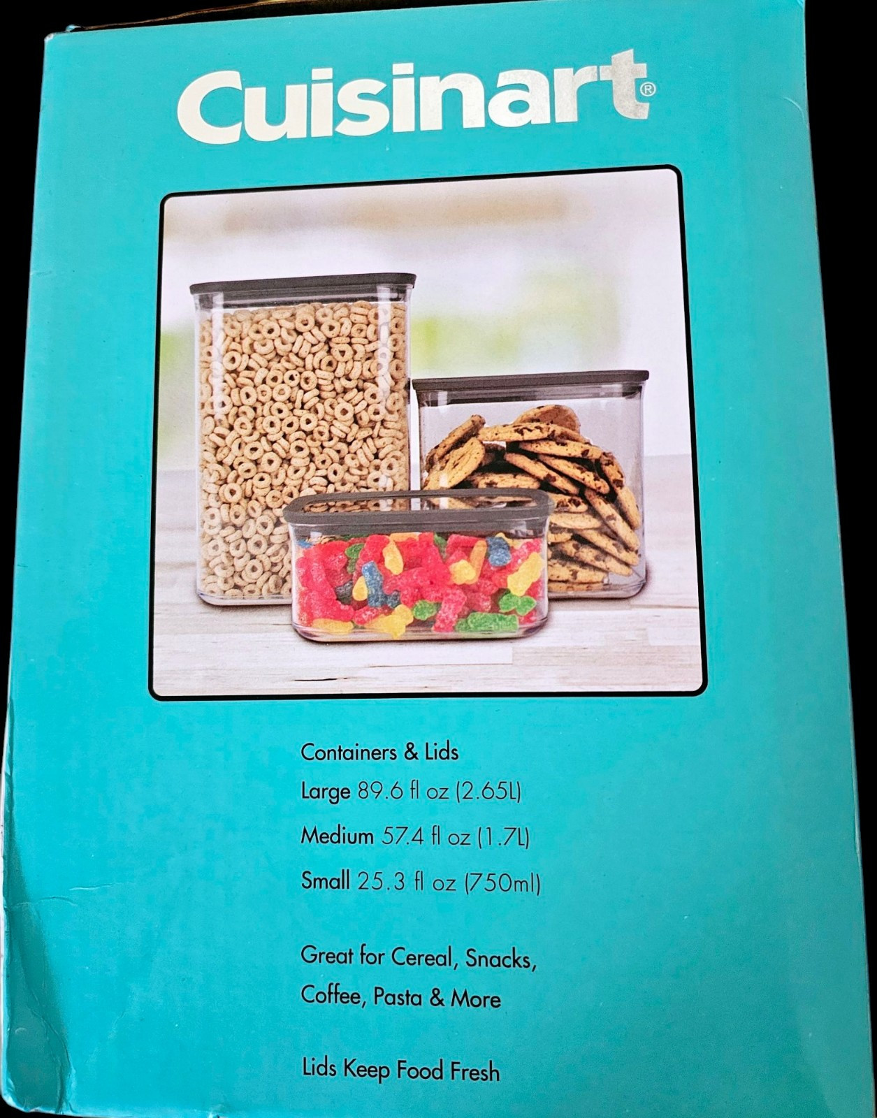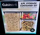The Cuisinart 6 PC BPA Free Storage Container and Lid Set includes six rectangular containers made of BPA-free plastic in a clear color. The set comes with fitted lids for each container, offering airtight storage for different capacities: 2.65 L, 1.7 L, and 750 ml. These classic-style containers are hand wash only, not microwaveable, and feature a solid pattern. The Cuisinart brand ensures quality and reliability in this practical kitchen storage solution.