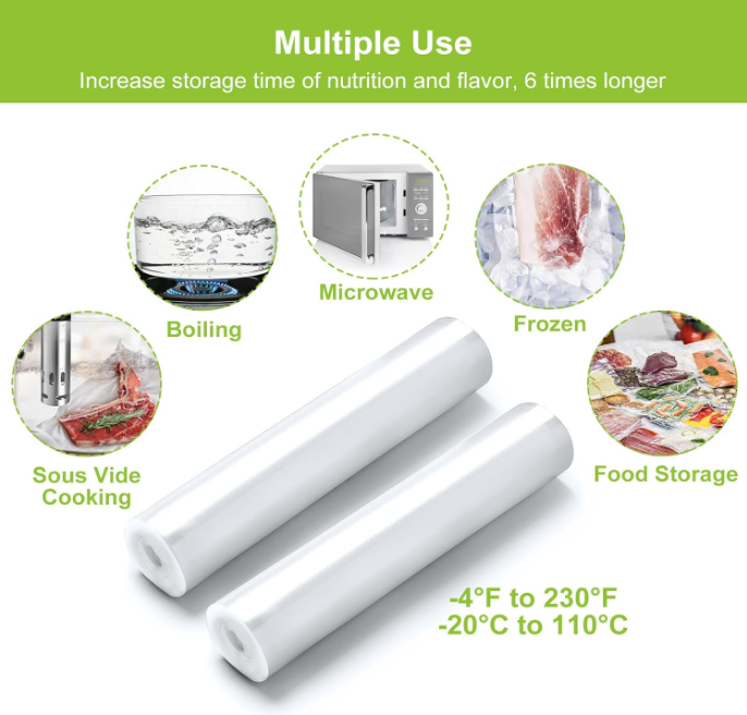 These vacuum sealer rolls are a game-changer for food storage! The BPA-free material is safe for microwave, freezer, and even sous vide cooking. I love how durable and thick they are—no more worrying about freezer burn or leaks. The ability to cut custom sizes means less waste, and the embossed side makes sealing effortless. Perfect for keeping leftovers, meats, and meal prep fresh for weeks. Highly recommend for anyone who loves organized, long-lasting food storage!