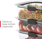 Rubbermaid brilliance; 100 percent leak proof, airtight food storage containers feature crystal clear, BPA free triton plastic that offers 360 degree clarity, and helps keep food fresh and secure Food containers are clear like glass so you can always see what’s inside, but are light and easy to carry; Stain and Odor resistant material keeps plastic food container looking like new Brilliance plastic containers have built in vents under the latches that allow splatter resistant microwave reheating with the lid on BPA free containers stack perfectly to one another to save space and stay organized in the fridge or cabinet, and are safe for the dishwasher and freezer; Lifetime Set includes two 0.5 Cup, two 1.3 Cup, two 3.2 Cup, and one 9.6 Cup containers, plus lids, for a total of 14 pieces Rubbermaid Brilliance airtight food storage containers are built with secure latches on each piece, so you can transport your favorite foods mess-free—even soups, stews, and sauces. The crystal-clear, durable Triton plastic container makes it easy to see what's inside, Plus it's stain- and odor-resistant, so it stays looking like new. The food container has built-in vents that allow steam to escape so you can conveniently microwave food without removing the lid. Brilliance containers stack neatly in the fridge and cabinets for efficient food storage, and are freezer- and dishwasher-safe.