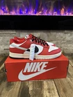 This Nike Dunk Low PRM Chicago Split sneaker in size 12 Men's features a Black colorway with a Red and Black split design. It is part of the Nike Dunk product line, showcasing a colorful theme and a low-top athletic style. Made in Vietnam, these sneakers are suitable for activewear, casual wear, and workwear, making them versatile for all seasons.