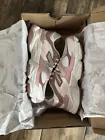 This is a brand new pair of New Balance 9060 sneakers in a limited edition "Rose Pink" color 8.5W/7M. They are in UK shoe size 6.5 (EU size 40) with a wide width. The shoes are designed for women and feature a cushioned suede upper material for added comfort. The model is GC9060FR and they belong to the New Balance 9060 product line.