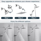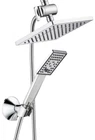 Upgrade Your Fixed or Handheld Showerhead to Our Dual Shower Heads: With TWO different and unique shower heads (one 8 inch square overhead rain shower head and one 3-spray setting handheld shower head with flexible hose). This set includes everything you need to upgrade your basic shower system without any tools required 4 Spray Settings: The easy to grip handheld shower head is built with 3 most useful spray settings – Rain, Pulsating Massage and Mix. Quickly change settings with one hand. The additional overhead rainfall shower provides ample spray coverage thanks to the impressive 81 nozzles spread over the 8 inch diameter face 3- way diverter: The 3-way diverter allows you to enjoy the water flow from one shower head only, either the handheld or the rain shower head, or both at the same time. The easy accessible button on the diverter clicks into place when adjusted and locked Drill-free Adjustable Handheld Shower Holder: No tools required, you can install the bracket at any desired height without leaving any holes in your shower wall and no harm to wall surface. Unique design is more stylish and beautiful than regular combo What’s Included in Your Shower Set: 1x large rainfall shower head with removable flow restrictor, 1x handheld showerhead with a removable flow restrictor, 1x three-way diverter, 1x 5ft shower hose, 1x wall mount bracket, 1x roll of Teflon thread seal