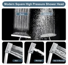 Upgrade Your Fixed or Handheld Showerhead to Our Dual Shower Heads: With TWO different and unique shower heads (one 8 inch square overhead rain shower head and one 3-spray setting handheld shower head with flexible hose). This set includes everything you need to upgrade your basic shower system without any tools required 4 Spray Settings: The easy to grip handheld shower head is built with 3 most useful spray settings – Rain, Pulsating Massage and Mix. Quickly change settings with one hand. The additional overhead rainfall shower provides ample spray coverage thanks to the impressive 81 nozzles spread over the 8 inch diameter face 3- way diverter: The 3-way diverter allows you to enjoy the water flow from one shower head only, either the handheld or the rain shower head, or both at the same time. The easy accessible button on the diverter clicks into place when adjusted and locked Drill-free Adjustable Handheld Shower Holder: No tools required, you can install the bracket at any desired height without leaving any holes in your shower wall and no harm to wall surface. Unique design is more stylish and beautiful than regular combo What’s Included in Your Shower Set: 1x large rainfall shower head with removable flow restrictor, 1x handheld showerhead with a removable flow restrictor, 1x three-way diverter, 1x 5ft shower hose, 1x wall mount bracket, 1x roll of Teflon thread seal
