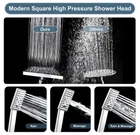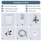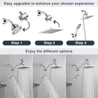 Upgrade Your Fixed or Handheld Showerhead to Our Dual Shower Heads: With TWO different and unique shower heads (one 8 inch square overhead rain shower head and one 3-spray setting handheld shower head with flexible hose). This set includes everything you need to upgrade your basic shower system without any tools required 4 Spray Settings: The easy to grip handheld shower head is built with 3 most useful spray settings – Rain, Pulsating Massage and Mix. Quickly change settings with one hand. The additional overhead rainfall shower provides ample spray coverage thanks to the impressive 81 nozzles spread over the 8 inch diameter face 3- way diverter: The 3-way diverter allows you to enjoy the water flow from one shower head only, either the handheld or the rain shower head, or both at the same time. The easy accessible button on the diverter clicks into place when adjusted and locked Drill-free Adjustable Handheld Shower Holder: No tools required, you can install the bracket at any desired height without leaving any holes in your shower wall and no harm to wall surface. Unique design is more stylish and beautiful than regular combo What’s Included in Your Shower Set: 1x large rainfall shower head with removable flow restrictor, 1x handheld showerhead with a removable flow restrictor, 1x three-way diverter, 1x 5ft shower hose, 1x wall mount bracket, 1x roll of Teflon thread seal