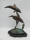 BRONZE CAST METAL STATUE - PAIR OF DOLPHINS FIGURINE - ON LACQUERED BASE DETAILED STATUE - GOOD ART STATUE FIGURINE 28 CM HIGH SEE PHOTOS FOR BEST GUIDE TO CONDITION I AM LISTING SOME OTHER ESTATE PIECES I can combine for postage. CHECK MY OTHER LISTINGS FOR MORE