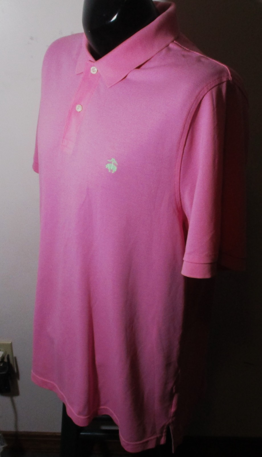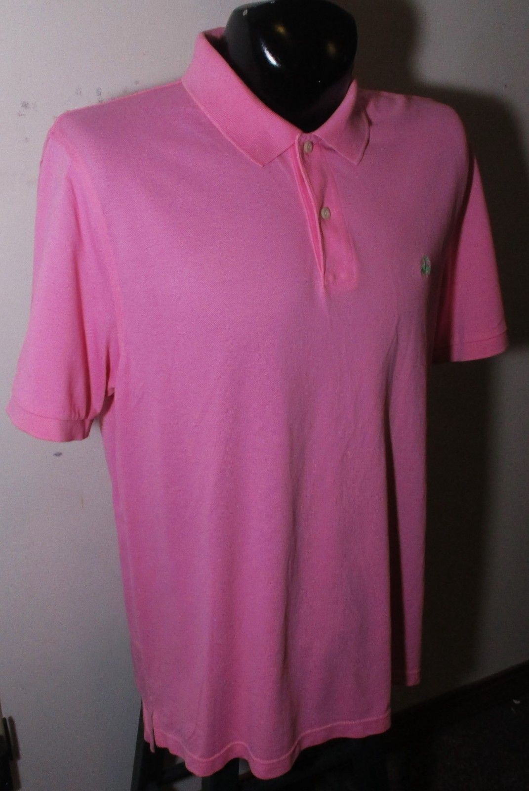 See my EBAY STORE at “SAMTPC53” to view 100’s more of my Men's SHIRTS!!! Combine Shipping: (on multiple items you pay full price on heaviest item first and then HALF PRICE shipping on ALL other items. Men's Short Sleeve Polo Shirt. Brand: BROOKS BROTHERS. Description: men's short sleeve 100% Cotton BROOKS BROTHERS polo shirt, logo on front, see pics. Color: Pink. Size: XL (please see measurements). Measurements: 24" armpit to armpit, 34" shoulder to hem. Material: 100% Cotton. Condition: Very Good condition, Note: light spot on very bottom back, nice shirt.