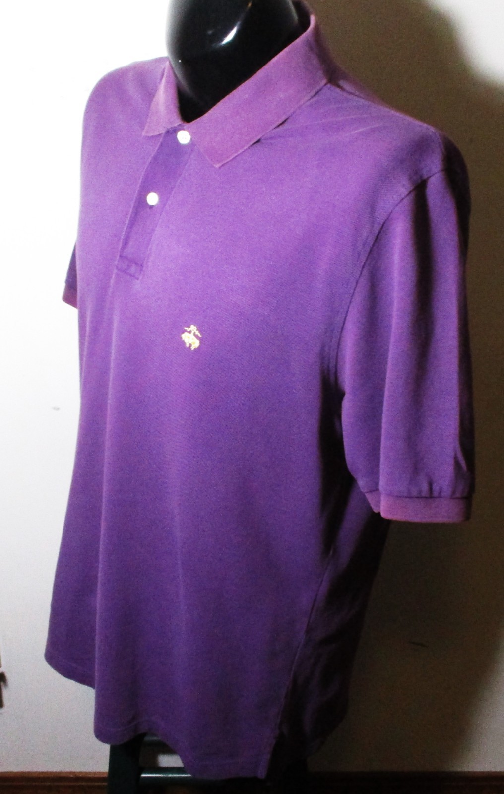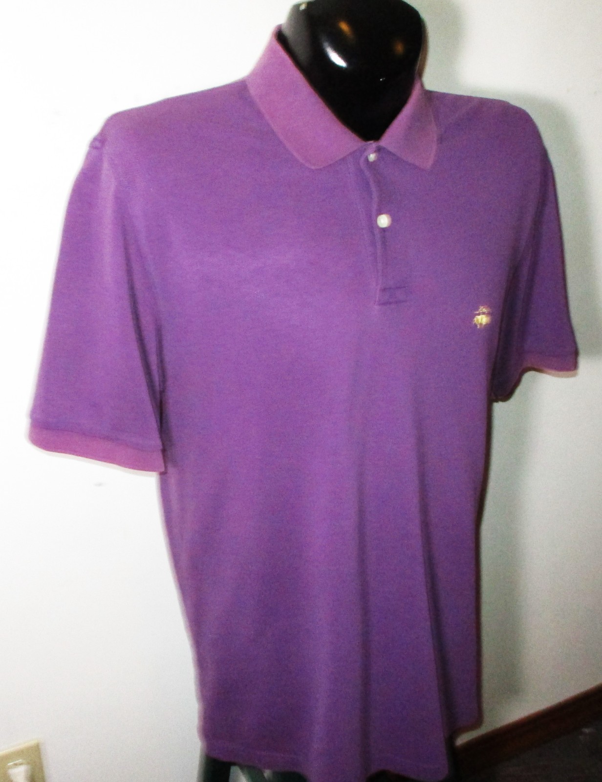 See my EBAY STORE at “SAMTPC53” to view 100’s more of my Men's SHIRTS!!! Combine Shipping: (on multiple items you pay full price on heaviest item first and then HALF PRICE shipping on ALL other items. Men's Short Sleeve Polo Shirt. Brand: BROOKS BROTHERS. Description: men's short sleeve 100% Cotton BROOKS BROTHERS polo shirt, logo on front, see pics. Color: Purple. Size: L (please see measurements). Measurements: 23" armpit to armpit, 31" shoulder to hem. Material: 100% Cotton. Condition: Very Good condition.