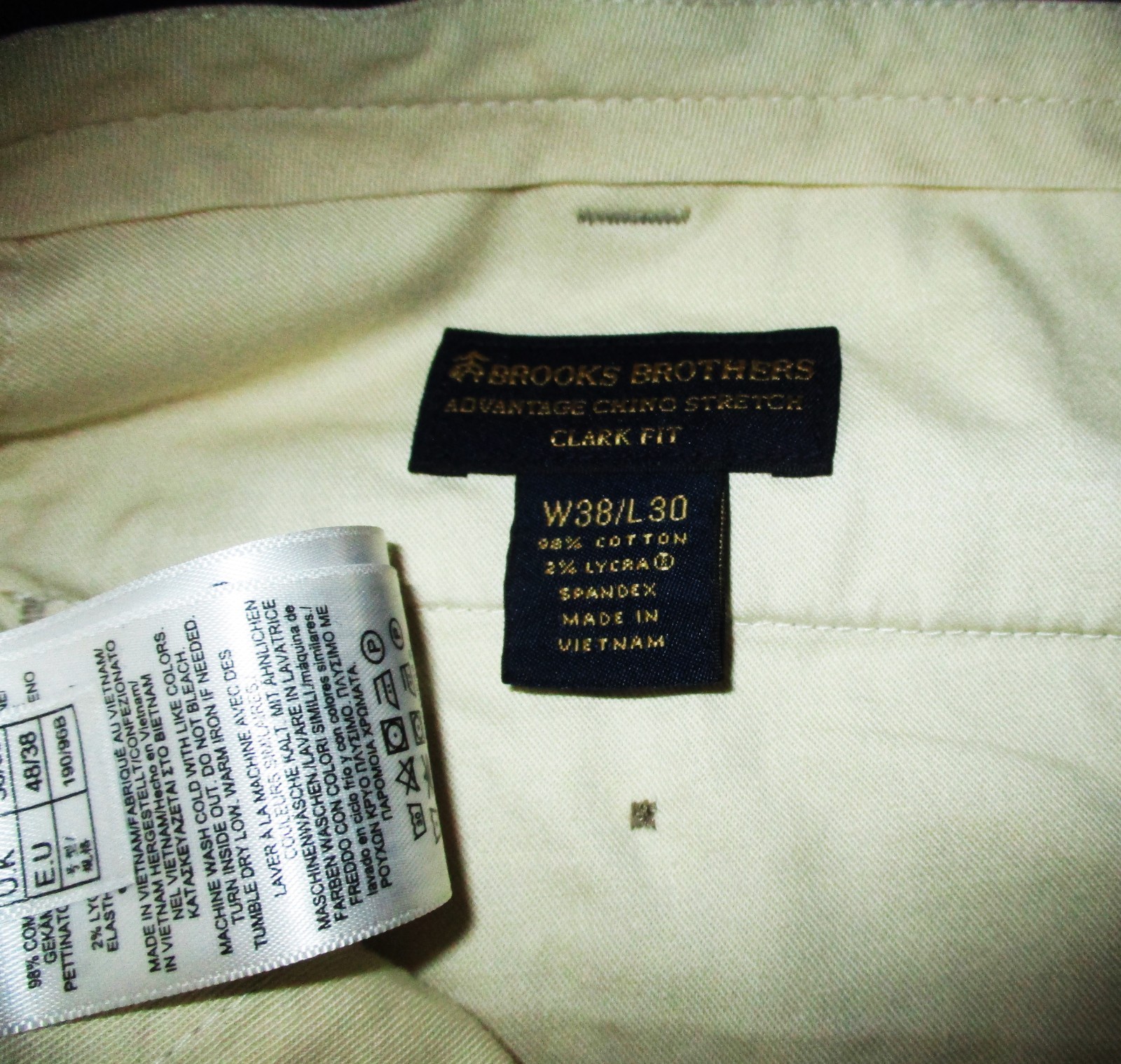 See my EBAY STORE at “SAMTPC53” to view 100’s more of my Men's Pants!!! Combine Shipping: (on multiple items you pay full price on heaviest item first and then HALF PRICE shipping on ALL other items. Men's Advantage Clark Fit" Flat Chino Pants. Brand: BROOKS BROTHERS. Description: men's "Advantage Clark Fit" BROOKS BROTHERS chino pants, flat front and no cuffs, zipper and button on front, belt loops, 2 front side pockets, 2 rear pockets, see pics. Color: Tan. Size: 38W, 30L (please see measurements). Measurements: 38" waist, 30" inseam, 11" rise. Material: 98% Cotton, 2% Spandex. Condition: Excellent condition.