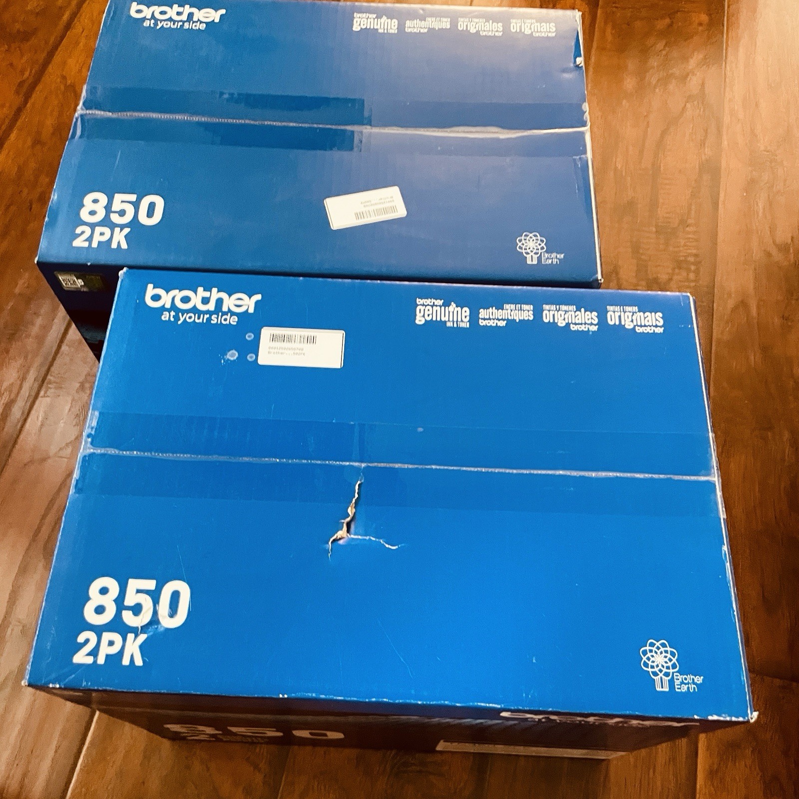 New and sealed. One box contains two pack of toner cartridge. One box has a dent on surface.