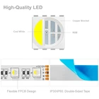 Description: 1. Light source: 5050 SMD LED strip. 2. Waterproof : IP30 Non-waterproof 3. Emitting color : RGBCW= RGB+White(6000k) 4 in 1 LED 4. Viewing angle : 120 degrees 5. 3M adhesive tape in backside 6. Operating Temperature : -25 ~ +60 ¡ãC 7. Storage Temperature : -40 ~ +80 ¡ãC 8. Voltage:DC 12V 9. Strip width: 12mm PCB Board 10. Size: L500cm (5M) x W1.2cm x T0.20cm 10. PCB Color: White Applications: 1). Architectural decorative lighting 2). Indoor and outdoor Decoration 3). Auditorium walkway lighting 4). Stairway lighting & Decoration 5). Border/contour lighting 6). Channel letter lighting 7). Emergency & Security lighting 8). Cove lighting 9). Shop-window decoration. Package Included: 1x5M RGBW 4 in 1 LED Strip light 1x 5pin connector Kindly note Led strip is made by 50cm FPCB, so there is a solder point each 50cm on strip. But this minor flaw has no any bad effect on the strip¡¯s performance. In fact, most of the LED strips on the market are manufactured in half-meter lengths. Related product link: RGBW strip RGB 3 colors in 1 + white https://www.amazon.com/dp/B01D1I4YFO 12V 6A power adaptor https://www.amazon.com/dp/B01D8FLU1Q 40key RGBW strip controller https://www.amazon.com/dp/B01HB3G2MS 24G-RGBWS controller https://www.amazon.com/dp/B01HASOYOM 24G1RF1RGBW controller https://www.amazon.com/dp/B01H87DZLI 5PIN-JST connector https://www.amazon.com/dp/B01DC0KNY2 5pin waterproof connector https://www.amazon.com/dp/B01LCV8ZMA 5PIN cable wire https://www.amazon.com/dp/B01DC0JVY0 Amazing Mixed colors in SMD. 60LED/m 5meters 16.4ft 300LEDs. 4 colors RGBW can be mixed into 16 million different colors, offering super bright glowing and vivid color. Cool white 6000K-7000K, Warm white 2700K-3000K. Additional pure white light is more energy efficient compared to mixed white light, the presence of pure white can make the project more perfect. It is dimmable and durable with more than 50000 hours lifespan. IP30 IP65 FPCB width: 12mm, IP67 silicone sleeve width: 14mm. Cuttable and Linkable. Our LED strip is flexible and easy to DIY. Every 3 LED is cuttable. 5 Pin (+12V G R B W) connector on two ends, one is female the other one is male, support end to end connect LED strips in series easily. IP30, IP65 Double side tape. IP67 has no tape on the back of LED strip. Work with RGBW Controllers. Support Tuya Zigbee 3.0 Controllers: LM052 Controller, C04Z Controller; Bluetooth APP Controllers: LM053 Controller; WiFi Alexa Google Home Controllers: WB5 Controller, C04W Controller; RF Remote Controllers: RC03RFB+1XC04RF Controller; etc. Power supply or controller is not included in package, requires an additional purchase. Only support DC12V Power supply. Power:0.1-0.4W/LED 6W-24W/m Total: 30W-120W. Recommand power supply: DC12V10A 120W. It is touchable and safe to children. It is not recommended to light up the maximum brightness mixed white light for a long time. Wide Application. LED strip lights are widely used for anywhere you want, Great for Architectural Lighting, Bar, home decoration, Cabinets, living room, bedroom, hotel, Club Lighting, Theater, Store, Restaurant, Home DIY lighting, etc, which can make your life colorful and amazing. Package included: 1 x RGBW 4 in 1 LED Strip light, 1 x 5Pin connector. Need a RGBW Controller and DC12V Power supply, Power supply or controller requires an additional purchase.