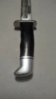 Blade not properly sharpened, soneone, not me took a grinder to it. I am not sure if box, sheeth or papers are original to knife. Anvil stamp is either custom or 2002. Box might be older. Its a garage sale find. Overall very good condition, blade scratched up.