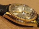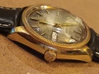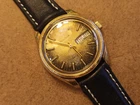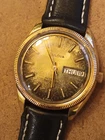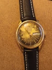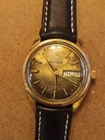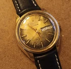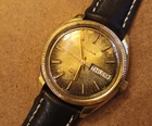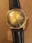 This vintage Bulova Set-O-Matic wristwatch features a striking tropical dial with Arabic numeral indices and a fixed gold bezel. The watch is made of stainless steel and has a two-piece leather strap with a buckle closure. The watch is Swiss made and has a mechanical automatic movement cal.1133.10 with 17 jewels, an anchor escapement, and a 35mm case size. This watch is perfect for men who appreciate a casual style and vintage design. It comes without papers, service records, original box/packaging, or manual/booklet. The Bulova Set-O-Matic is a classic timepiece that will never go out of style and is sure to make a great addition to any collection. The watch is in working order and keeps very good time , recently service. Sold as is. Shipment by DHL only excluded Ucrania Russia and Israel.