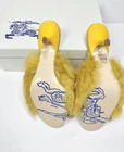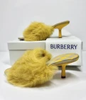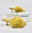 100% Authentic Guaranteed Condition: Brand new in the box with Dust Bag . Made in: Italy Burberry Minnie Genuine Shearling Slide Sandals in Mustard/Manilla, size 38 (US 8). These slip-on sandals feature a kitten heel, genuine shearling upper, leather outsole, and textile lining. Perfect for travel, parties, or workwear in summer, fall, or spring. Crafted in Italy with a stylish design reflecting fashion, luxury, and designer appeal.